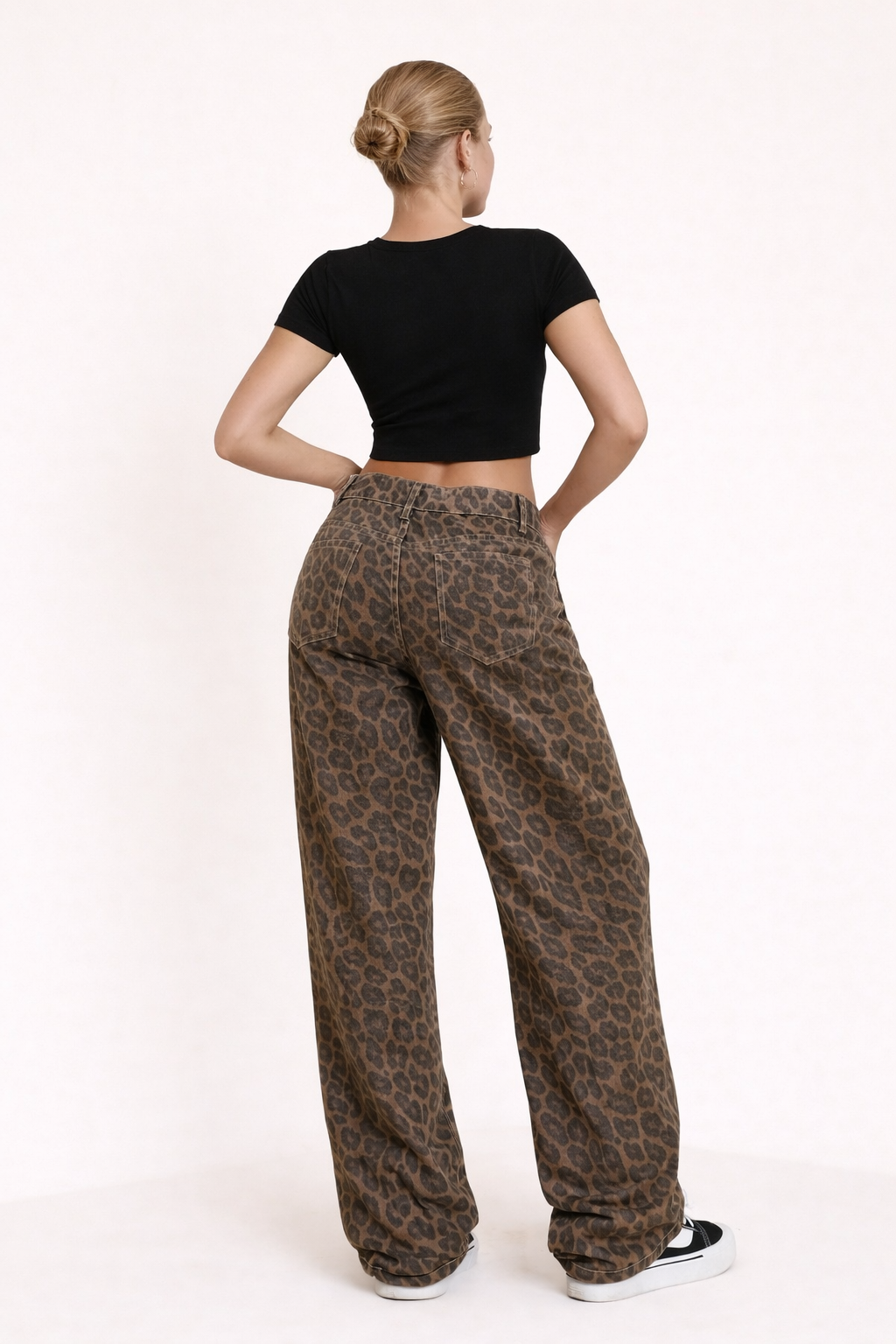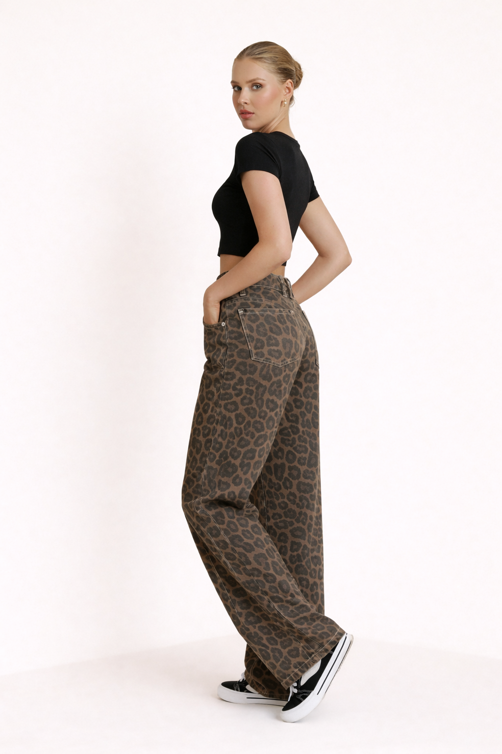 Jean large à imprimé léopard au style audacieux, parfait pour affirmer une allure tendance et urbaine. Confortable et moderne, il s’intègre facilement aux looks streetwear, casual chic et mode contemporaine.